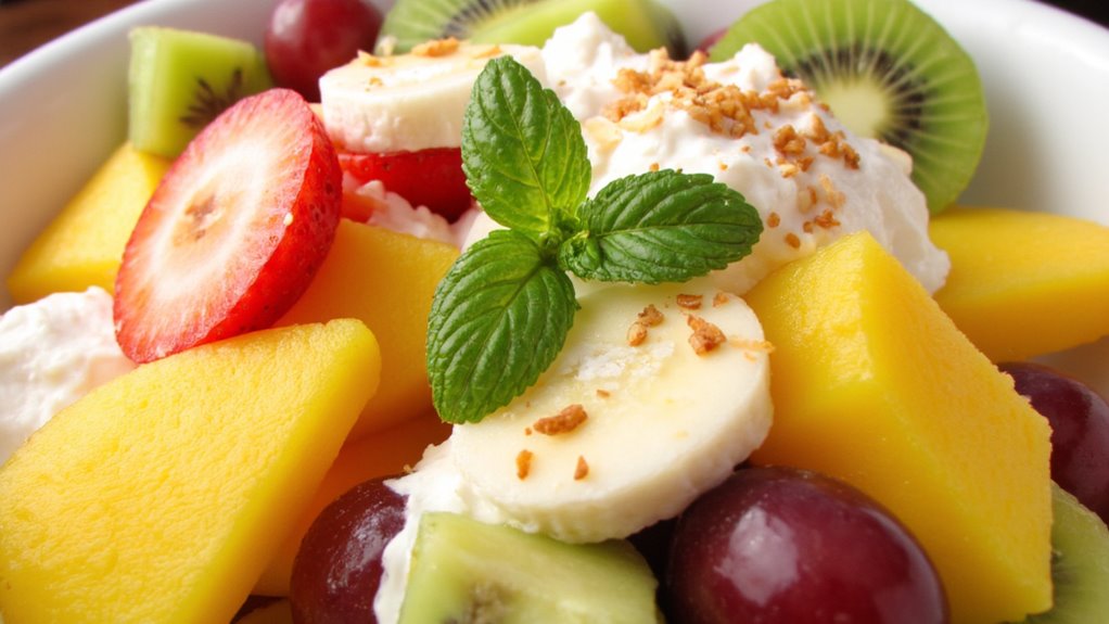 This delightful salad is versatile and can be customized with your favorite fruits. Common choices include mangoes, pineapples, and bananas, but feel free to experiment with whatever is in season or available. The coconut dressing adds a rich, nutty flavor that complements the fruits beautifully, creating a harmonious blend of tastes and textures.