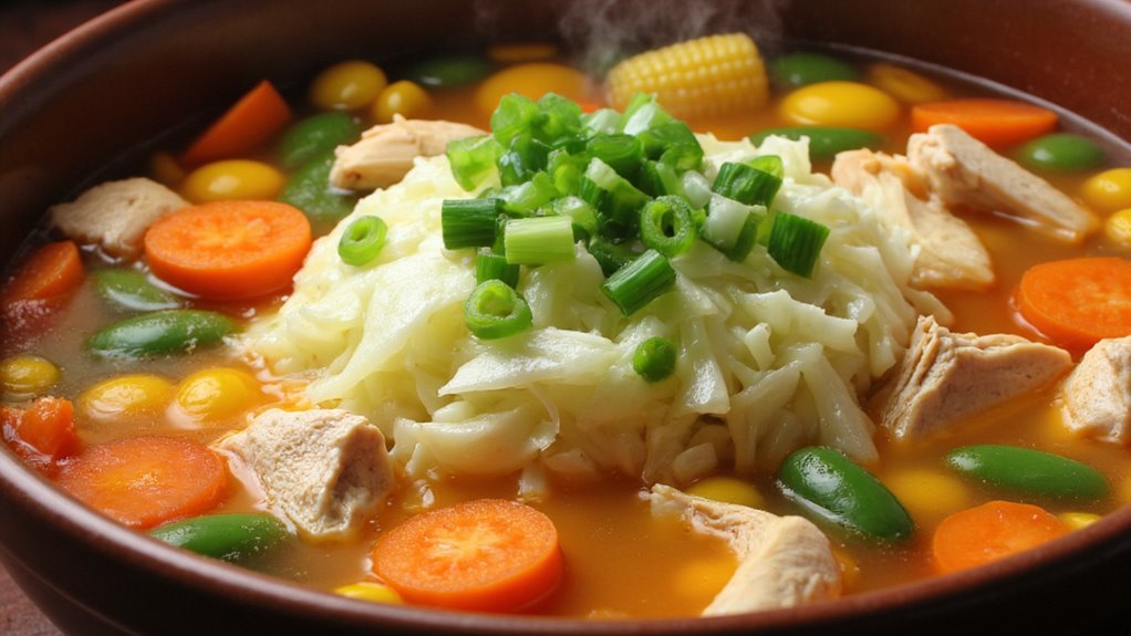 6. Finish with Cabbage and Corn: Finally, add the chopped cabbage and corn kernels to the pot. Cook for an additional 5 minutes, allowing the cabbage to wilt and the corn to heat through. This guarantees that all the vegetables are cooked perfectly without losing their vibrant colors.