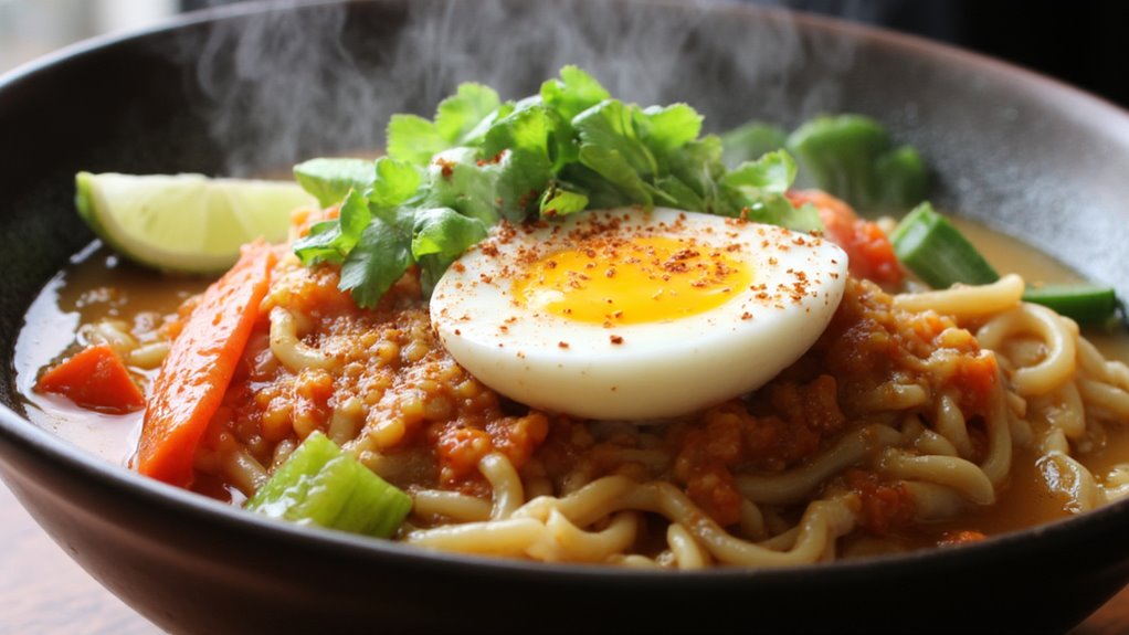 The beauty of Spicy Garlic Ramen lies in its flexibility. You can customize it with your favorite toppings, such as soft-boiled eggs, green onions, or even a sprinkle of sesame seeds. This dish isn’t only quick to prepare, but it also brings the vibrant flavors of Korean cuisine right to your kitchen.