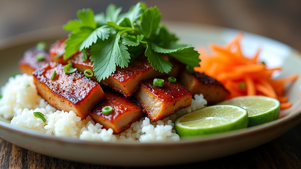- Assemble the Dish: Serve the caramelized pork belly over a bed of cooked jasmine rice. Garnish with fresh herbs and pickled vegetables. Squeeze lime juice over the top for an extra burst of flavor.