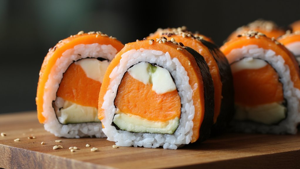 When I think about sushi, my mind fills with the vibrant colors and artful presentations that brighten any table. Each roll has its own story, from the creamy California roll to the intricate Dragon roll. It’s truly amazing how simple ingredients can come together to create something visually stunning and delicious. If you’re interested in crafting these masterpieces at home, these recipes might just be your next culinary adventure. Get ready to explore a world of flavors and creativity in your kitchen.