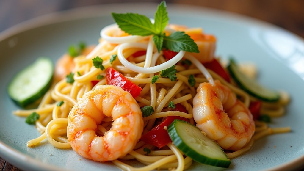 When the weather gets warmer, I find myself craving the fresh and vibrant flavors of Vietnamese noodle salads. There’s something so delightful about the combination of crisp veggies, fragrant herbs, and tender noodles. Whether it’s the classic Bun Thit Nuong or a refreshing shrimp and mango mix, these salads offer a burst of color and taste. They’re perfect for those looking for a light yet satisfying meal. Ready to explore more?