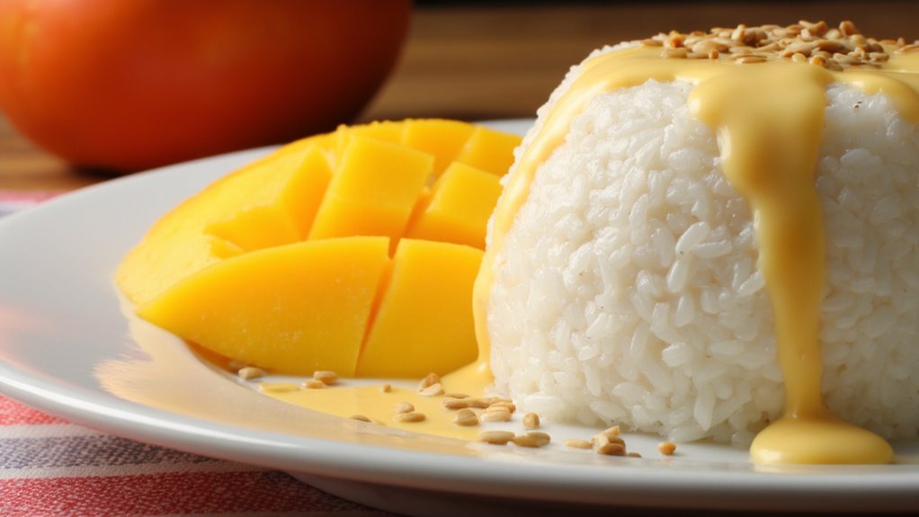 - Assemble the Dish: To serve, place a generous scoop of the coconut sticky rice on a plate and arrange the mango slices beside it. Drizzle the reserved coconut sauce over the top and sprinkle with sesame seeds or mung beans if desired.