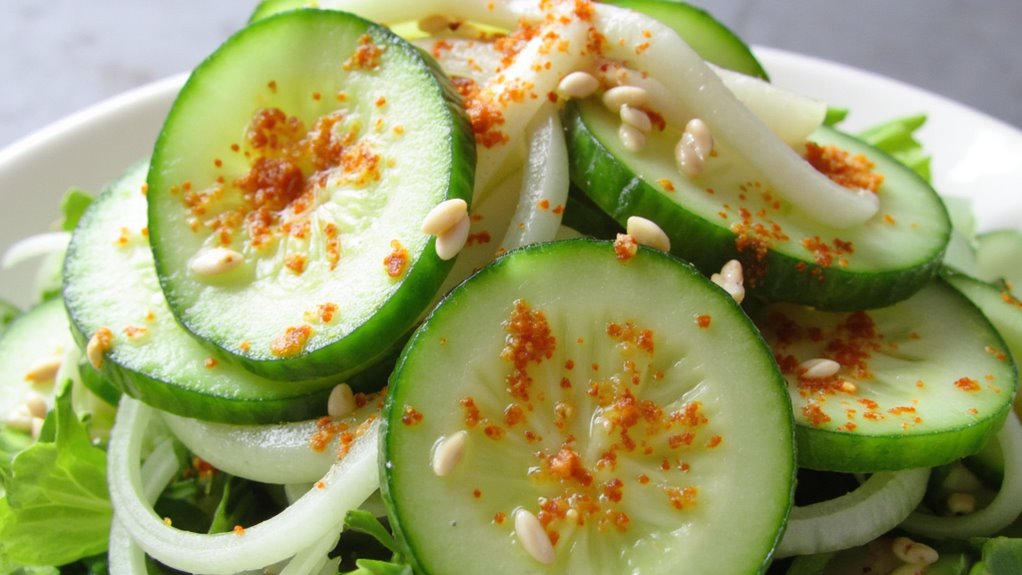 Revitalizing Korean Cucumber Salad, also known as Oi Muchim, is a delightful and vibrant dish that brings a taste of Korea to your table. This salad isn’t only easy to make but also incredibly invigorating, making it a perfect accompaniment to any meal. The cucumbers are typically tossed in a flavorful dressing that combines sweet, salty, and spicy elements, enhancing their natural crunch and freshness.