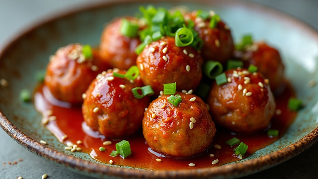6. Serve and Garnish: Transfer the meatballs to a serving dish, and sprinkle with chopped scallions and sesame seeds for garnish. Serve hot as an appetizer or over steamed rice for a complete meal.