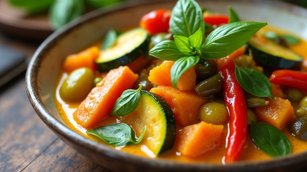 Spicy Vegetable Curry With Kaffir Lime and Basil