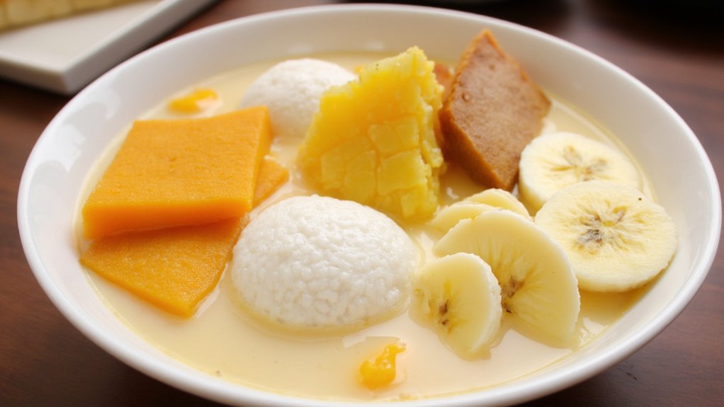 - Incorporate the Fruits: Once the rice balls are cooked, add the sliced bananas and jackfruit to the pot. Let everything simmer together for an additional 5 minutes, allowing the flavors to meld.