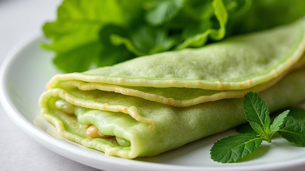To make this dish, you’ll need to prepare the batter, the sweet bean filling, and garnishes. The batter is made from a mixture of rice flour, coconut milk, and fresh pandan juice, creating a slightly sweet base that crisps up beautifully when cooked. The sweet bean filling, made from mung beans, sugar, and coconut milk, is creamy and rich, offering a delightful contrast to the crispy crepe. Served with fresh herbs and lettuce, this dish is best enjoyed with a tangy dipping sauce, adding a rejuvenating touch to each bite.